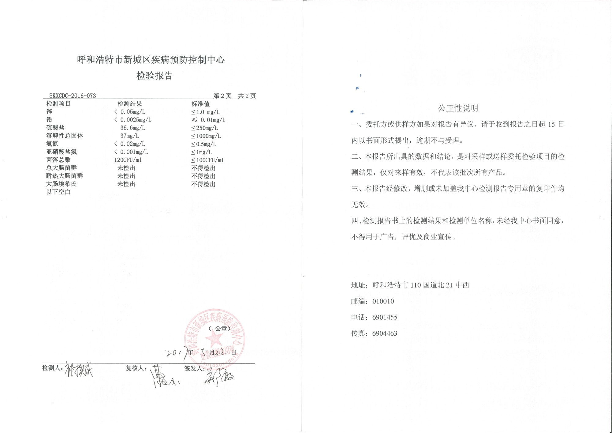 公示呼市新城区疾控中心对我校饮用水(过滤后)检测报告原文网址
