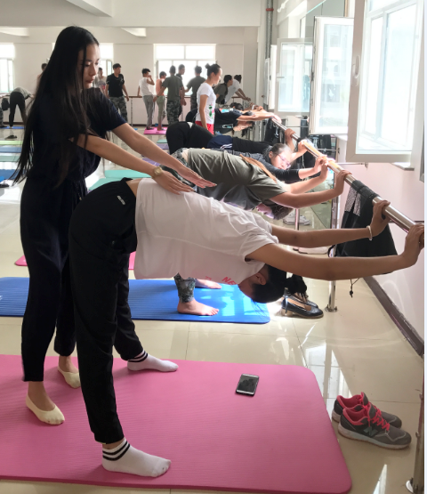6月2日周五下午,学院空乘班的学生在李老师的带领下,在形体室进行形体训练及瑜伽课程。