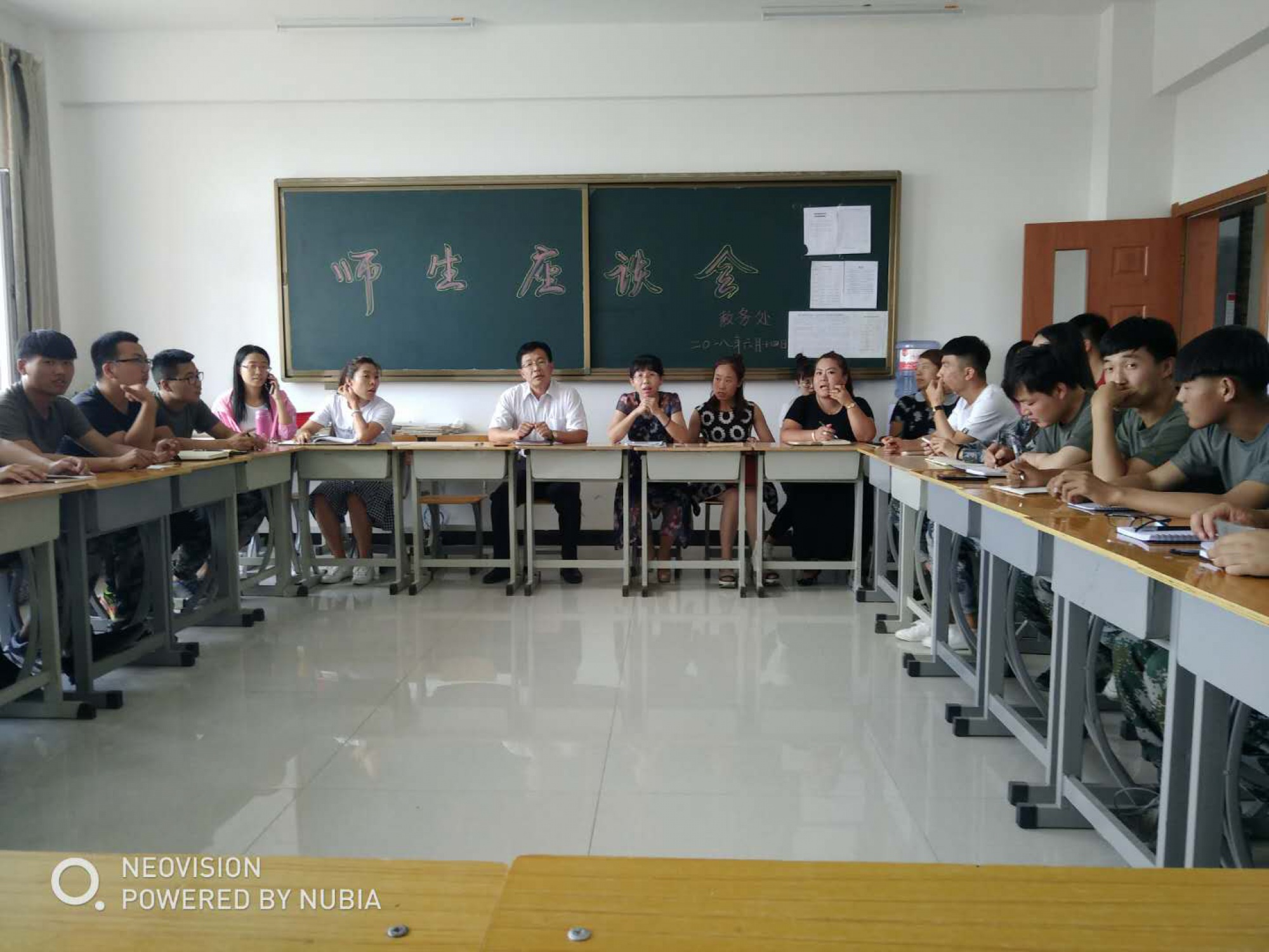 为了加强教学管理,提高教学质量,进一步了解全校教学状况和学生的学习情况、增进师生情感,6月14日星期四下午, 教务处组织召开2017--2018学年第二学期师生座谈会,对开学以来的教学情况进行交流。参加座谈会的有教学副院长谢飞、教务处处长刘国华、专职教师、教务处全体人员以及33个班级的教务助理。座谈会由刘国华处长主持。刘处长首先说明座谈的目的是针对过去半学期教与学进行总结反思,教师与学生面对面充分交流,彼此寻找更合适的教学方法与学习方法,解决学生在学习和生活中遇到的问题。
