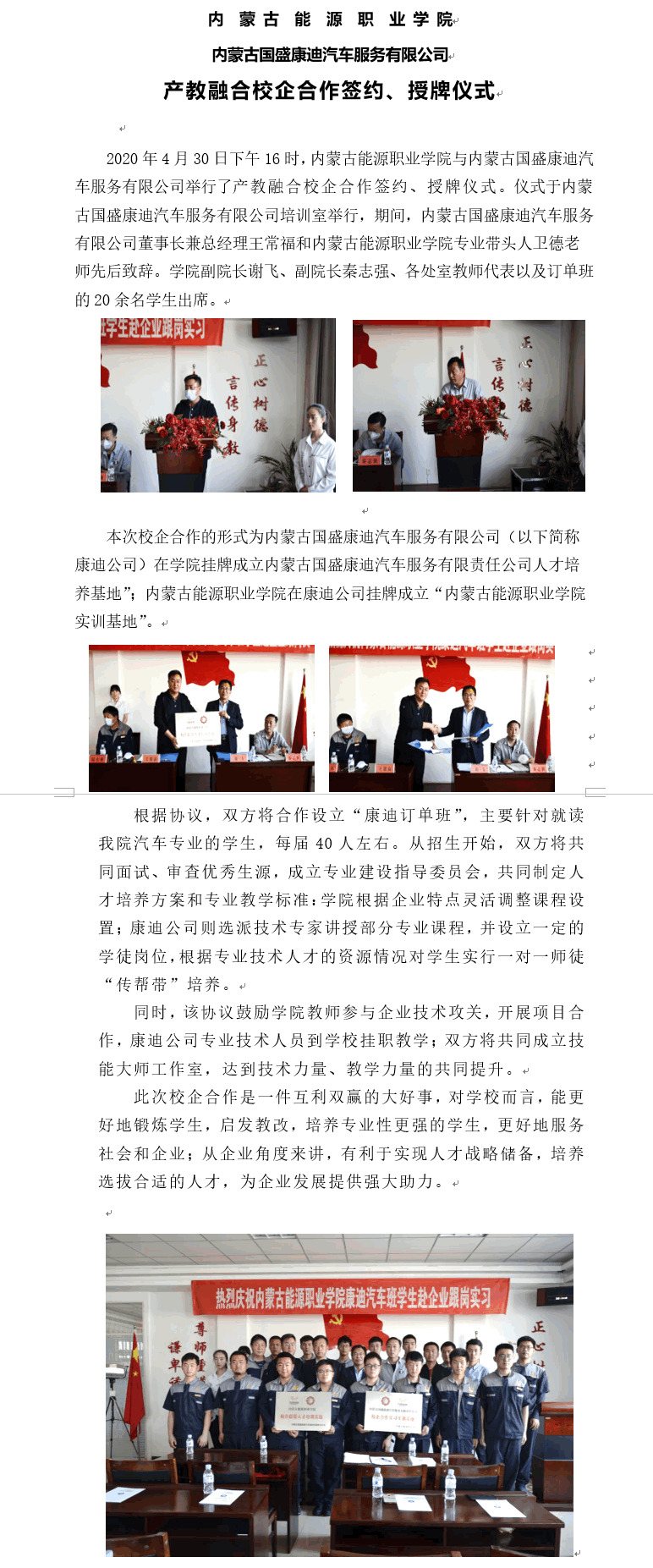 内蒙古国盛康迪汽车服务有限公司与产教融合校企合作签约、授牌仪式-内蒙古能源职业学院