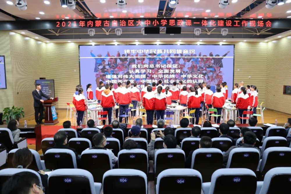 2021年3月17日,内蒙古自治区党委宣传部、高校工委、教育厅在呼和浩特市联合召开我区大中小学思政课一体化建设现场会。会议深入贯彻落实学校思想政治理论课教师座谈会精神及中央、自治区关于思政课改革创新的一系列部署,交流展示各地各校深化思政课改革创新的经验做法,以“铸牢中华民族共同体意识”为主线构建全区大中小学思政课一体化建设新格局。