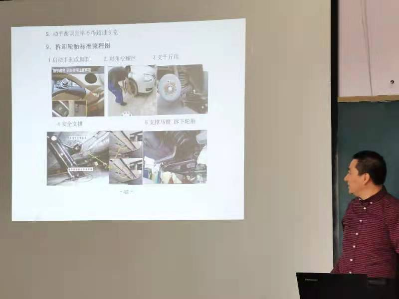 张总为学生全面介绍了一个汽车公司从接待到修理的过程及细节,并将吉安特公司内部训资料以PPT的形式展现给学生,专业内容涉及汽车四级员工必备技能,如空调几大滤芯及补胎、换机油等。明确了各级别员工所在岗位职责及技能,给予学生更明确的未来发展方向。
