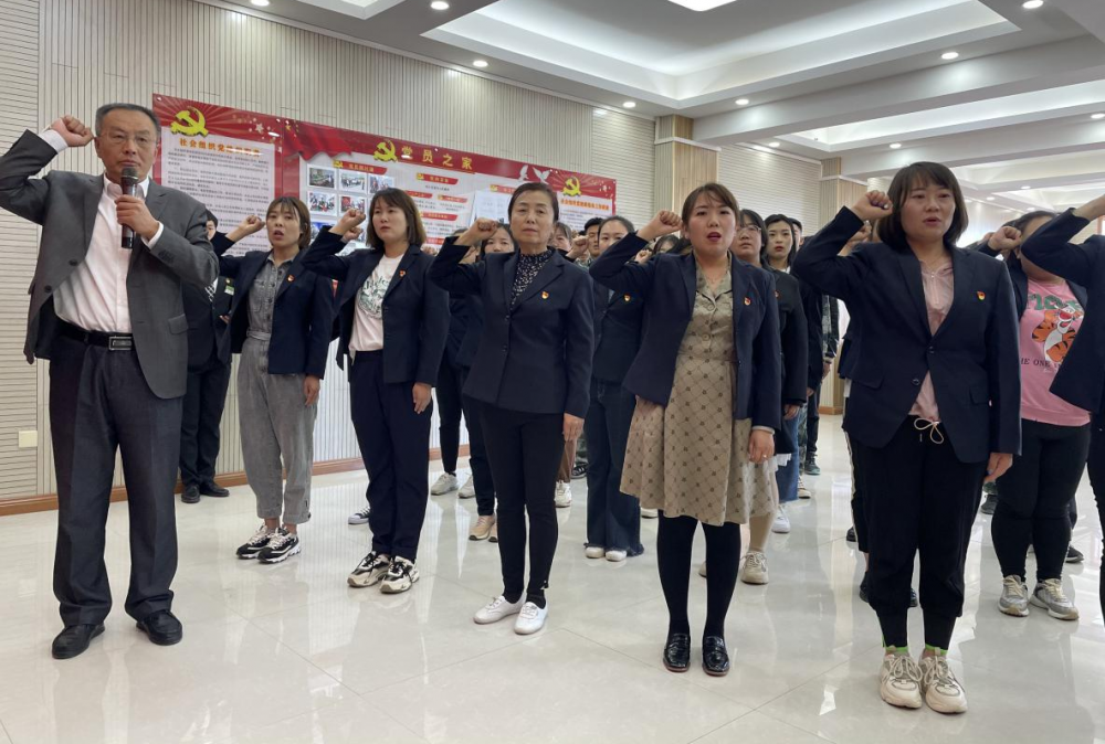 活动现场,全体党员、预备党员佩戴党徽,合唱《没有共产党就没有心中国》。举起右拳,面向党旗庄严宣誓。铿锵的誓词,坚定的承诺,让每一位党员同志的心灵再次受到震撼和洗礼。