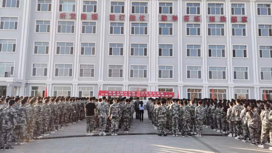 根据国务院、中央军委的决策部署,今年首次实行一年两次征兵,3月份圆满完成了上半年的征兵工作,4月1日开始,下半年网上应征报名已经开始,6月9日新城区人武部富昱陶参谋来我院就2021年下半年大学生征兵工作进行面对面动员,重点对大学生关注的征兵要求和优待政策进行耐心、详细讲解。通过聆听富参谋讲解当前国防形势、解读征兵政策,让同学们真正了解了当前国家和自治区的参军入伍优待政策,增强了政策的可信度。我院学生听后备受鼓舞,倍感振奋,统统表示要参军入伍保家卫国。动员大会由学生工作处副处长白亚楠主持宣讲仪式。