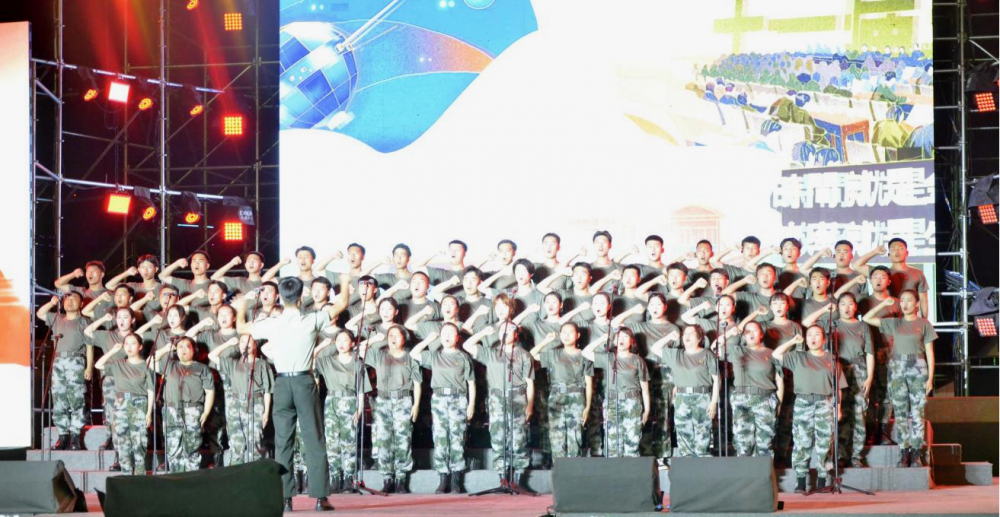 学院合唱队整齐的队伍,过硬的作风,积极的态度,朴素统一迷彩的着装,学院师生头顶烈日,克服困难,在极短的时间内一遍又一遍的对节目进行排练,用超强的凝聚力讴歌党、讴歌祖国和人民,用歌声唱响爱党爱国的时代主旋律。