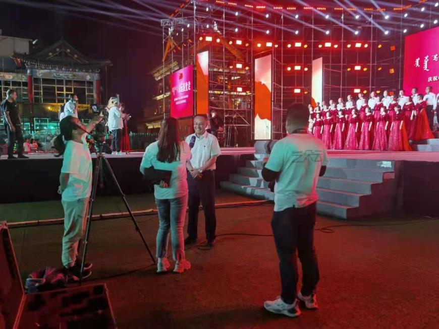 演出结束后,内蒙古大学合唱队指挥许可和我院书记王传东接受了内蒙古美育在线——艺朵云的采访。王传东书记在采访中表示:“作为参加群众合唱展演活动的24所高校中唯一一所民办院校,节目准备时间并不是很充分,但我们以饱满的热情、充足的干劲圆满的完成了演出任务,表达了我院师生对党的深情厚意,对祖国的真心讴歌,展现了内蒙古能源职业学院师生的风采。合唱表演充分调动了大家的积极性,增强了凝聚力,抒发了我们对党、对社会主义祖国的热爱之情。”