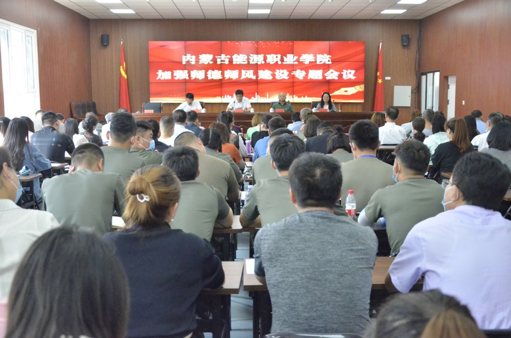 陈泽锋书记表示,来到内蒙古能源职业学院,感到学院高度重视党建工作,领导干部素质高、能力强、整体凝聚力强、战斗力强、执行力强,学院办学定位准、专业设计合理、校园环境美、设施完善,学生教育管理卓有成效,并结合在公办高校工作经验,就如何进一步贯彻党的教育方针、以党建促发展、加强师德师风建设、推进学院在新的历史起点上高质量发展向全体老师提出要求:一是全面加强党的建设,全面贯彻党的教育方针,牢牢把握社会主义办学方向,使学校成为坚持党的领导的坚强阵地。二是加强校风、教风、学风建设,要以党风促教风、学风,以作风、学风保证校风。三是重点加强专业建设和课程建设,优化人才培养体系,建立课程、专业、学科“三位一体”思政教学体系。四是按照习近平总书记“四有好老师”“四个引路人”“四个相统一”等一系列要求,大力加强师德师风建设。五是开展铸牢中华民族共同体意识教育,增强广大师生对伟大祖国、中华民族、中华文化、中国特色社会主义的认同。
