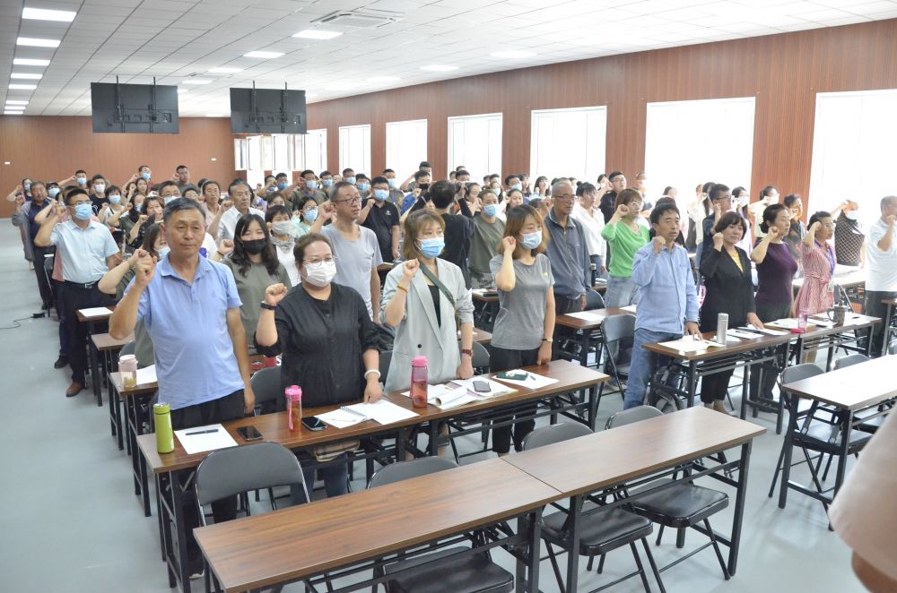 荆志方副书记传达学习了《新时代高校教师职业行为十项准则》《内蒙古自治区高等学校教师师德失范行为负面清单》《新时代中小学教师职业行为十项准则》《中小学教师违反职业道德行为负面清单》《新城区教育局关于对启秀中学(东校区)教师师德失范问题的通报》等文件,组织全院教师集中宣誓,签订师德师风承诺书,郑重许下为人师表、“不忘初心、牢记使命”,做“四有好老师”的铮铮誓言。