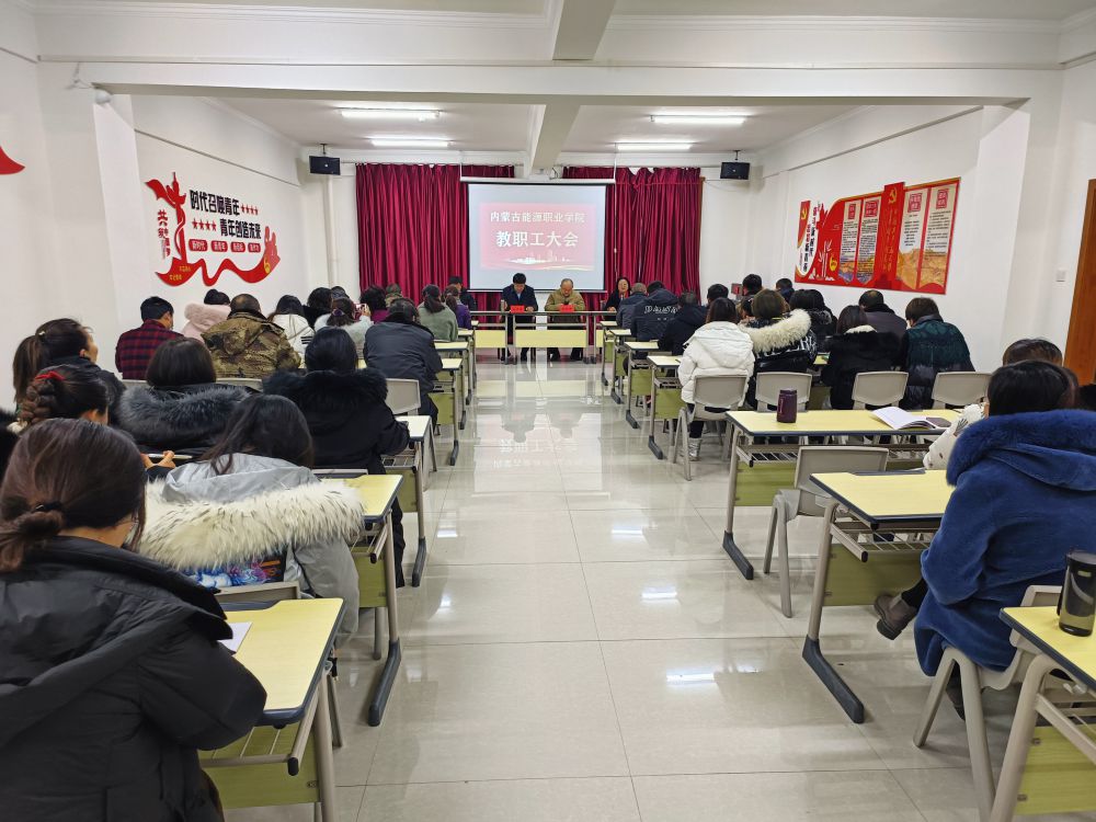 学院院长赵晓峰作总结讲话,他指出,刚刚过去的2021年,是我们学院取得丰硕成果的一年,一年来,我们在党政领导班子的带领下,全体教职工以高度的责任感和认真忘我的工作态度,全身心投入到学院的各项工作中,学院军事化管理的特色受到社会各界的高度肯定和一致认可,这给了我们从未有过的信心和力量。2022年,全院教职员工要进一步统一思想,提高认识,理清思路,坚决信心,团结拼搏,扎实工作,增强责任意识、忧患意识、竞争意识和底线意识,为能源学院在新的一年里再上新台阶而奋力拼搏。