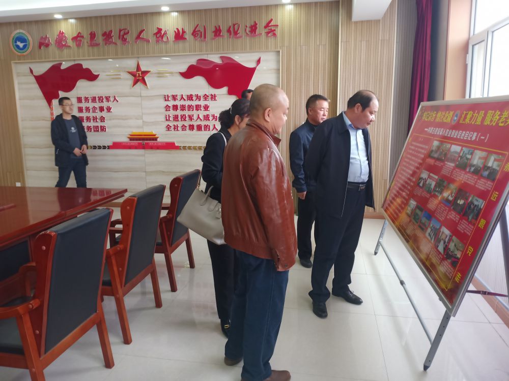 王英坝局长一行还参观内蒙古退役军人就业创业促进会,对内蒙古退役军人就业创业促进会给予高度评价,他说促进会成立近二年来,吸纳有着军人血统、志愿为退役军人服务的企业加入,为退役军人提供就业岗位、创业指导、免费法律咨询、超市购物和就餐打折、配眼镜和汽车维修保养优惠等服务,对困难退役老兵给予重点帮扶,扎实有效的工作受到退役军人事务系统的充分肯定。乌兰察布市退役军人事务局要学习借鉴,在当地推进成立类似社会组织,凝聚社会力量,服务退役军人,让退役军人获得感成色更足!