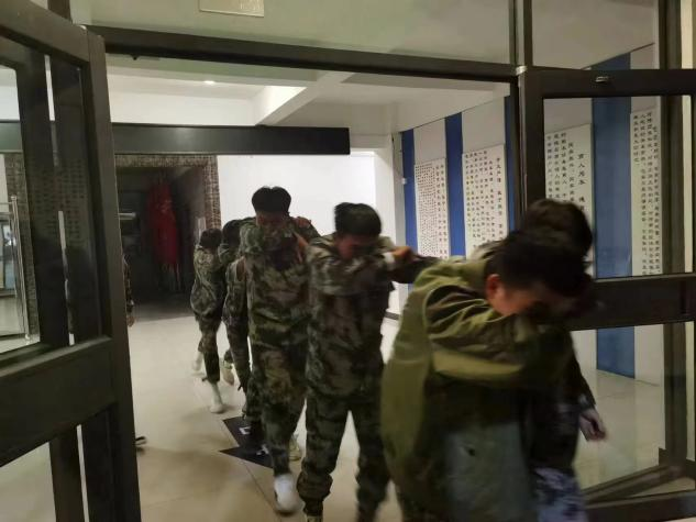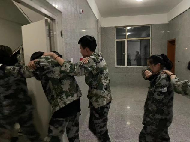 在疏散逃生环节,随着急促的哨声响起,消防宣讲师肖老师在宿舍楼依次拉开消防演练专用烟雾弹,参加演练的学生们按照演练方案预先设定的疏散路线和规定要求,用湿毛巾捂住口鼻,以低姿快速、有序地从各个安全出口进行疏散撤离,到指定地点集中,各辅导员核查人员名单。