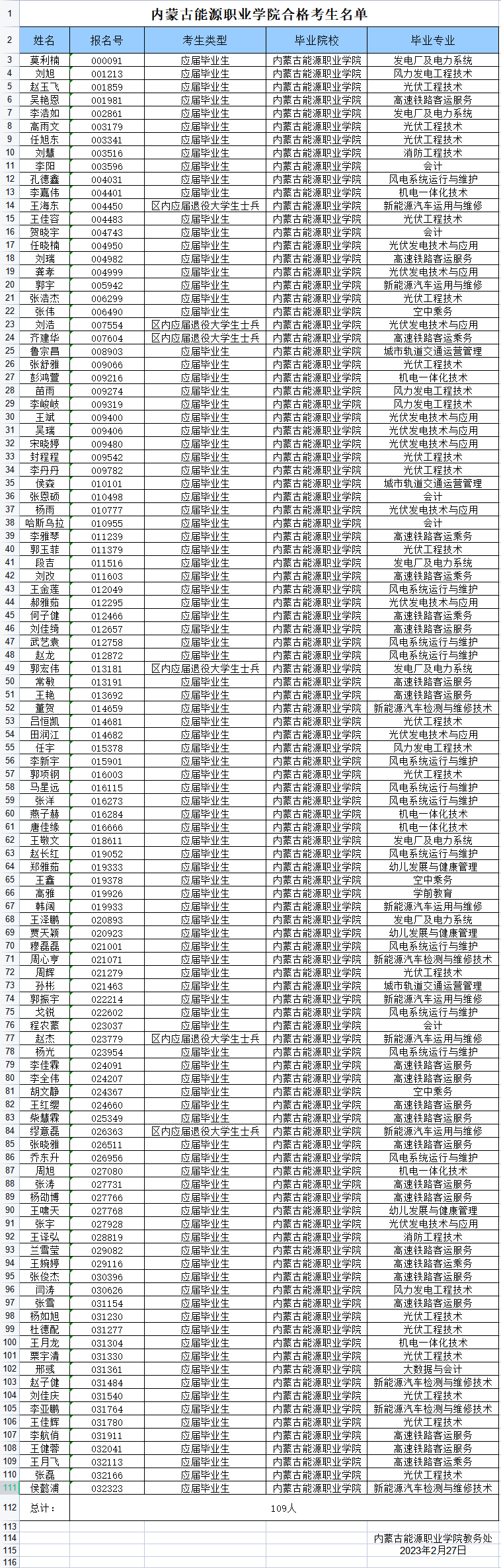 内蒙古能源职业学院合格考生名单-内蒙古能源职业学院