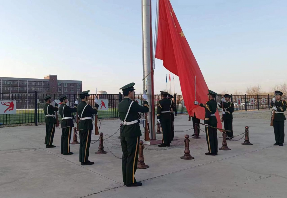 五星红旗在国旗班的护送下庄严入场,伴着雄壮的义勇军进行曲,鲜艳的五星红旗再次冉冉升起,全体师生面向国旗、齐唱国歌,表达对祖国的无限热爱和崇高敬意。