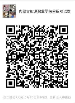 考生在完成网上填报志愿后,及时关注“内蒙古能源职院”官方微信,扫码进入微信群领取《准考证》并缴纳考试费。(缴费后自行放弃考试不予退费)