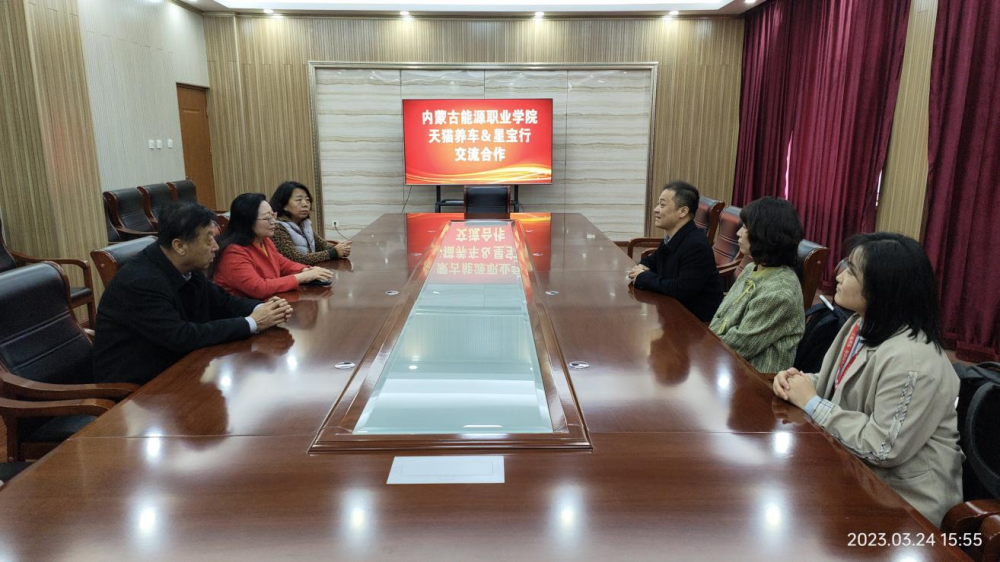 为了深化产教融合,推动校企合作深入发展,不断提升人才培养质量。2023年3月23日下午,天猫养车&星宝行董事长王利山、人力资源总监刘海鸥一行到我院考察交流,交流会上副院长张瑞英进行了深入的会谈,学院新能源汽车运用与维修专业学科带头人、教务处负责人出席。