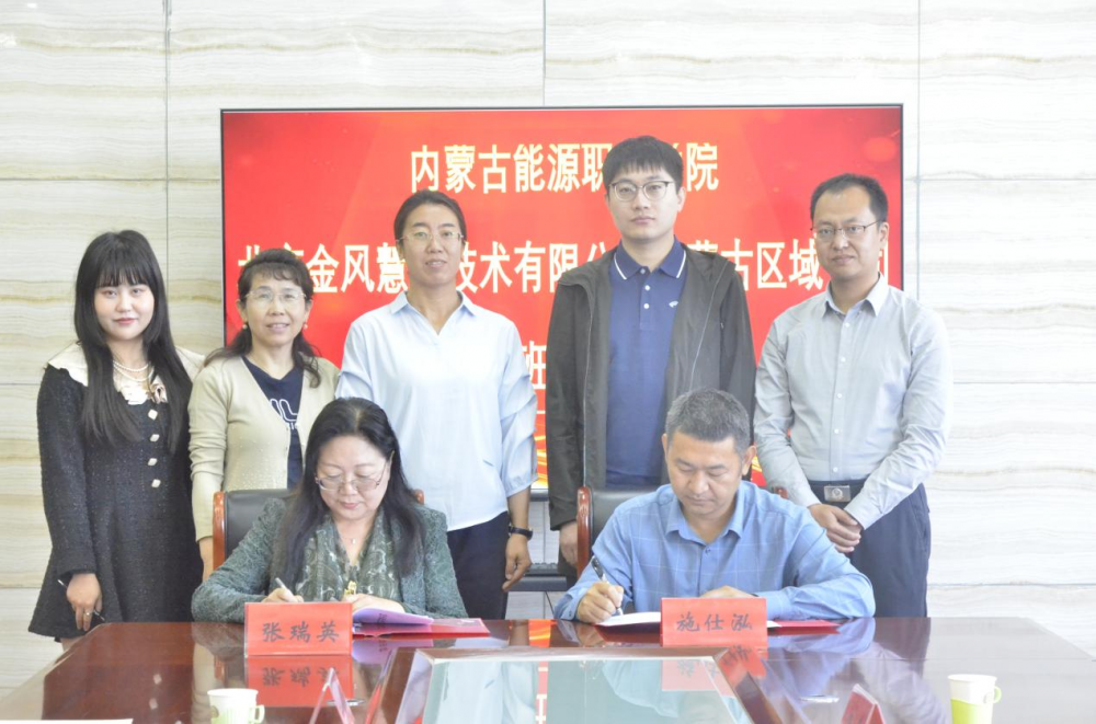 2023年5月17日上午,内蒙古能源职业学院与北京金风慧能技术有限公司内蒙古区域公司举行校企合作“订单班”签约仪式,并取得圆满成功。学院副院长张瑞英,北京金风慧能技术有限公司内蒙古区域公司总经理施仕泓、内蒙古区域公司计划经理王东升,内蒙古区域公司HRBP李亮,以及学院教务处、就业处、风力发电工程技术专业学科带头人部门负责人出席仪式。