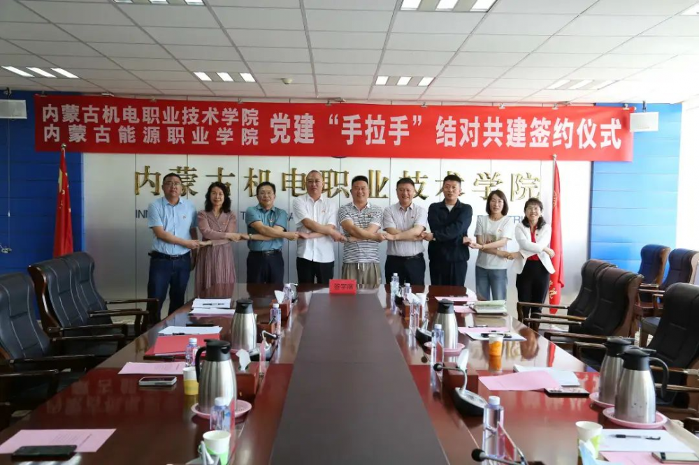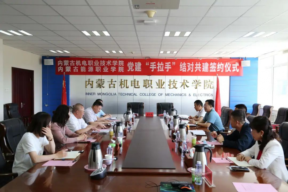 5月29日上午,内蒙古能源职业学院与内蒙古机电职业技术学院举行党建“手拉手”结对共建签约仪式,仪式由内蒙古机电职业技术学院党委委员、组织(统战)部部长项海涛主持。学院党委副书记白亚楠,党政办、教务处、学工处相关处室负责人参加。