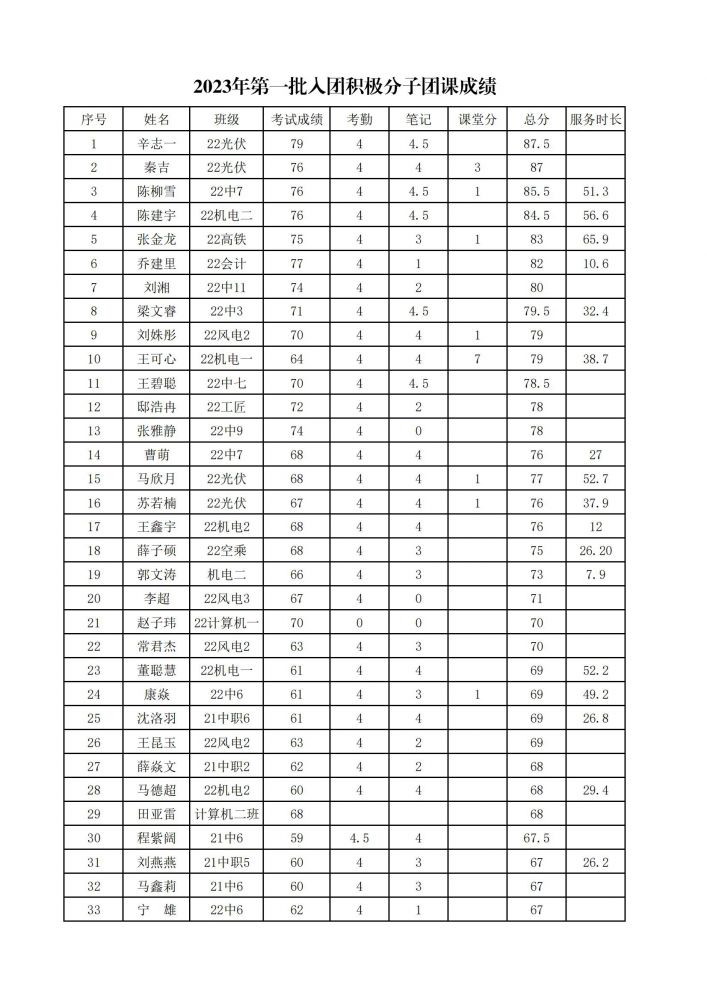 我院2023年第一批入团积极分子团课成绩-内蒙古能源职业学院
