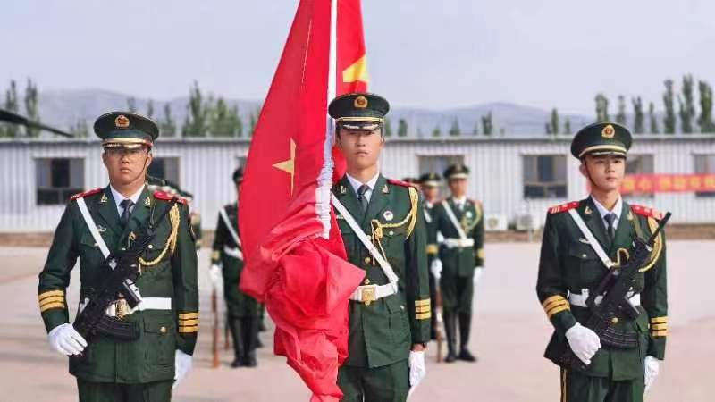 上午十点整,国旗护卫队队员庄严入场。他们步履铿锵,用挺拔的军姿、雄壮威武的气势,向全体师生展示出能源学子气宇轩昂的精神风貌。军训汇报表演在庄严肃穆的国歌声中拉开帷幕,全体人员面向国旗,行注目礼。