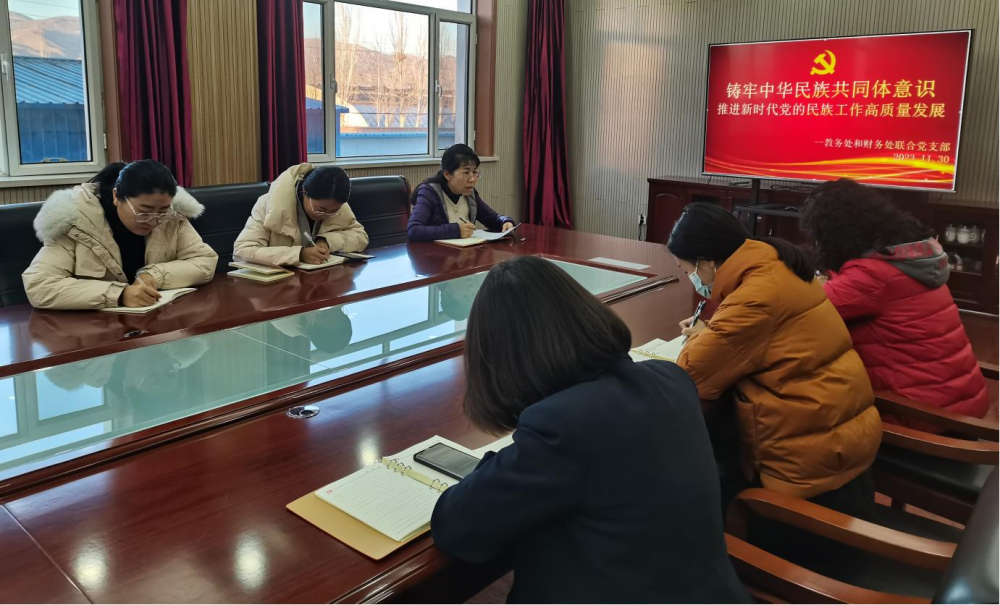 2023年12月1日教务处和财务处联合党支部召开了主题为:“铸牢中华民族共同体意识推进新时代党的民族工作高质量发展”的主题会议,本次会议由支部书记刘国华领学,支部全体成员参加学习。