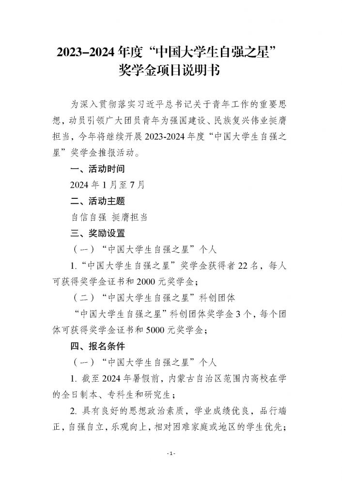 2023-2024年度“中国大学生自强之星” 奖学金项目说明书