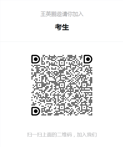 1、微信缴纳考务费后下载钉钉,扫描二维码入群。