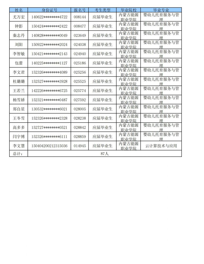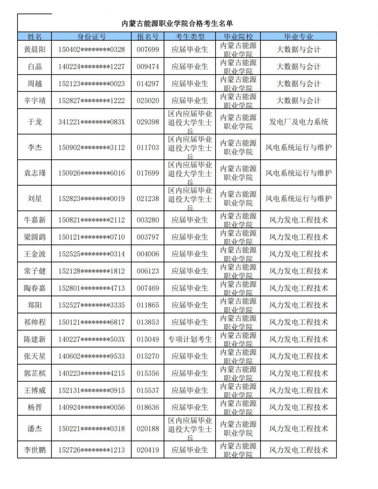 内蒙古能源职业学院2024年专升本合格考生名单-内蒙古能源职业学院