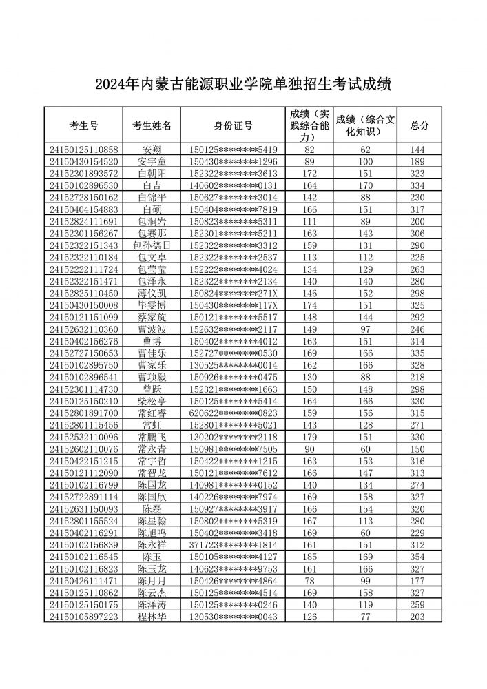 2024年内蒙古能源职业学院单独招生考试成绩-内蒙古能源职业学院