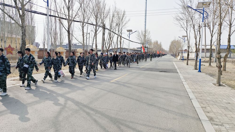 一年之计在于春,一日之计在于晨。清明节的早晨春风拂面,晨曦微露,全院师生准时在学院大操场集合,目光坚定,精神抖擞,激情满怀,带着探索的精神和青春的乐观无畏,迈着整齐的步伐踏上了徒步远足之旅。师生们在春意盎然中踏歌而行,步伐稳健,队旗迎风飘扬,队伍井然有序。迎风飘扬的红色旗帜展示着必胜的信心。