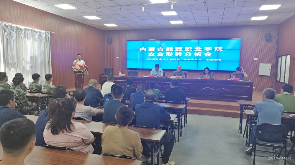 6月12日,学院在多功能报告厅召开安全工作形势分析会。学院领导赵晓峰、陈泽锋、张瑞英、白亚楠出席,学院全体教职工、餐厅商超工作人员和学生骨干参加会议。