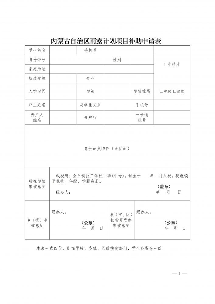内蒙古自治区雨露计划项目补助申请表-内蒙古能源职业学院