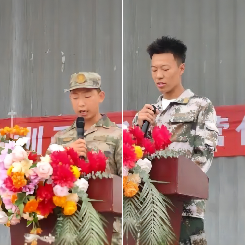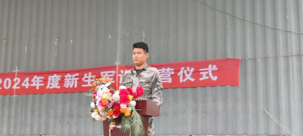 三中队风电专业郭文博同学代表全体新生发言。他对即将开始的军训生活充满期待同时对未来的学习生涯表示憧憬。在他步入校园后就被教官们飒爽的英姿、整齐划一的动作所震撼,承诺以饱满的热情、坚定的信念投入到军训之中,学习教官们身上的优良品格,努力学习军事技能,培养团队协作精神,为成为一名合格的社会主义建设者和接班人打下坚实的基础。