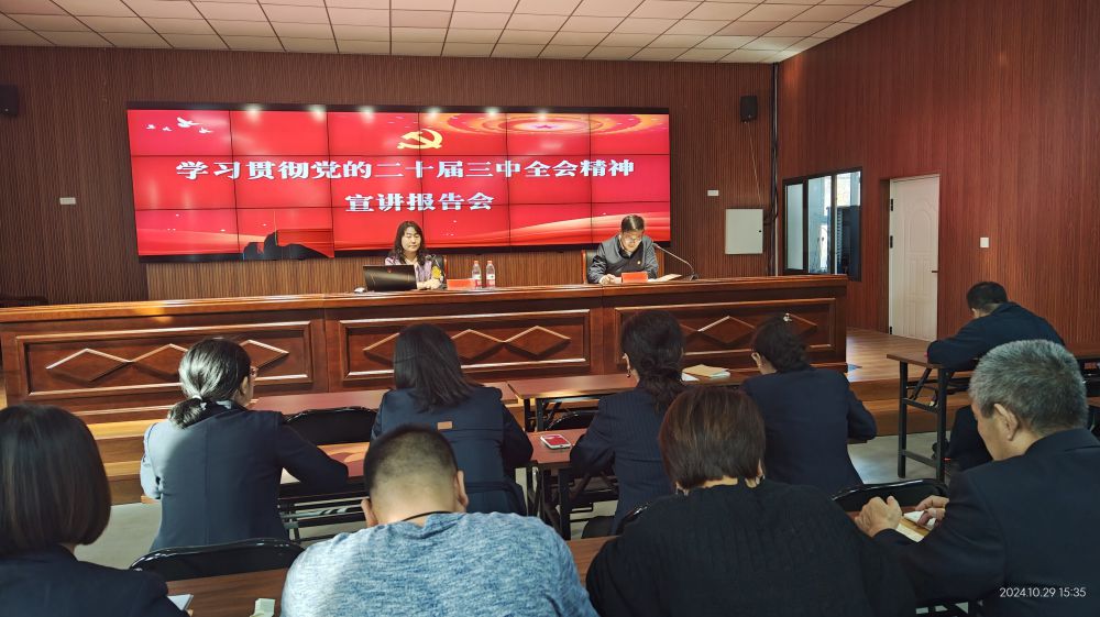 为深入学习贯彻党的二十届三中全会精神,深入学习领会习近平总书记在党的二十届三中全会上的重要讲话精神,引导广大师生将全会精神领会深、理解透、把握准,切实把思想和行动统一到全会精神上来。10月29日下午,学院邀请内蒙古党校党史党建教研部于美丽教授作了题为《深刻把握党的二十届三中全会的科学内涵与实践要求》的报告。全体教职工,学生党员、发展对象参加宣讲会。会议由学院党委书记陈泽锋主持。