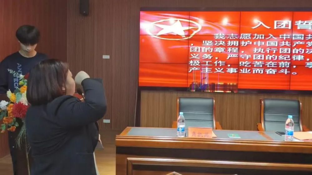 “我志愿加入中国共产主义青年团,坚决拥护中国共产党,遵守团的章程,执行团的决议,履行团员义务,严守团的纪律,勤奋学习,积极工作,为共产主义事业而奋斗!”所有团员在团委书记宇文娟庄严宣誓。
