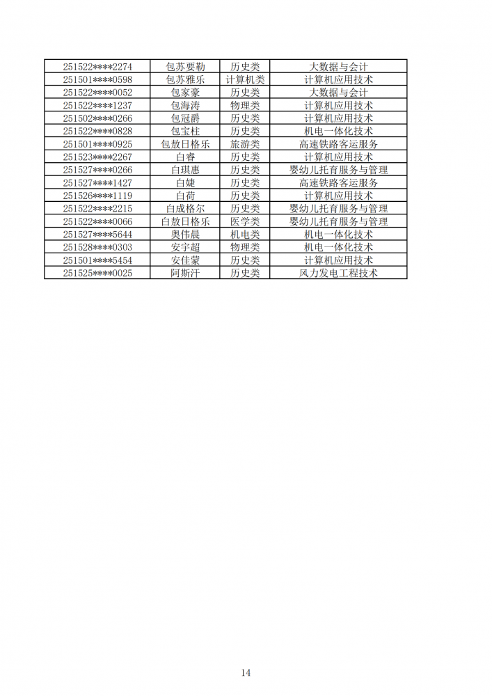 内蒙古能源职业学院2025年第一次单独招生考试拟录取名单-内蒙古能源职业学院