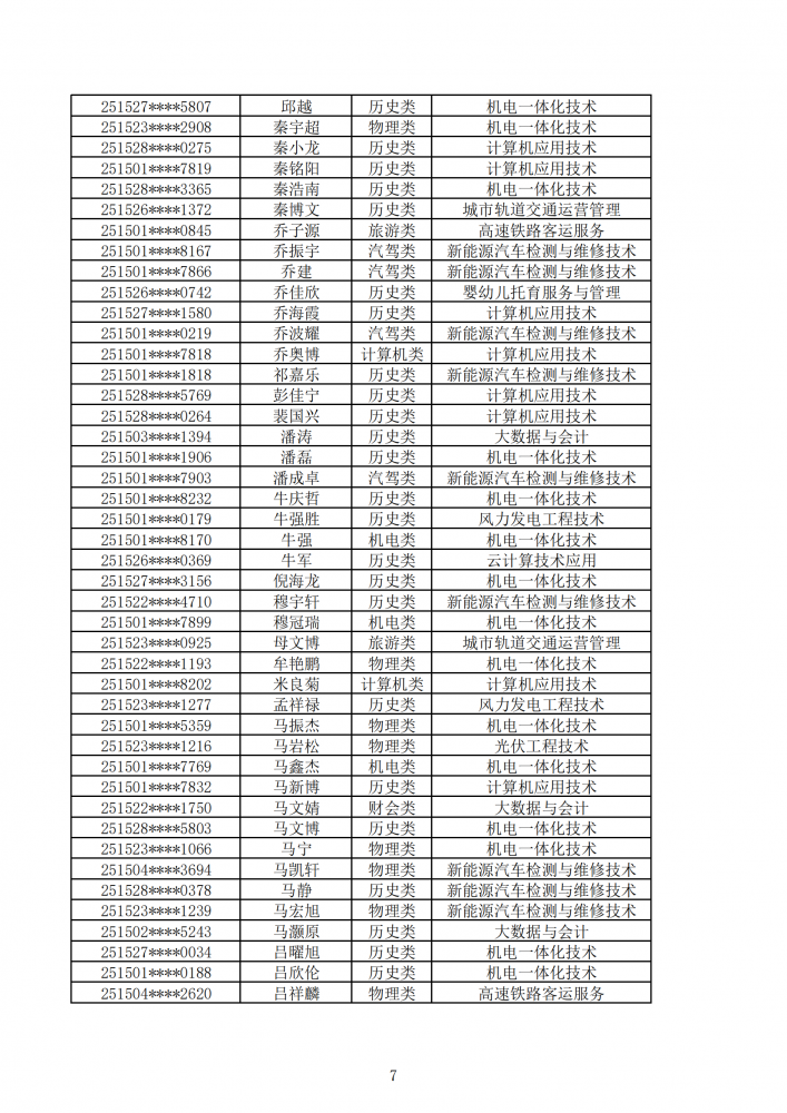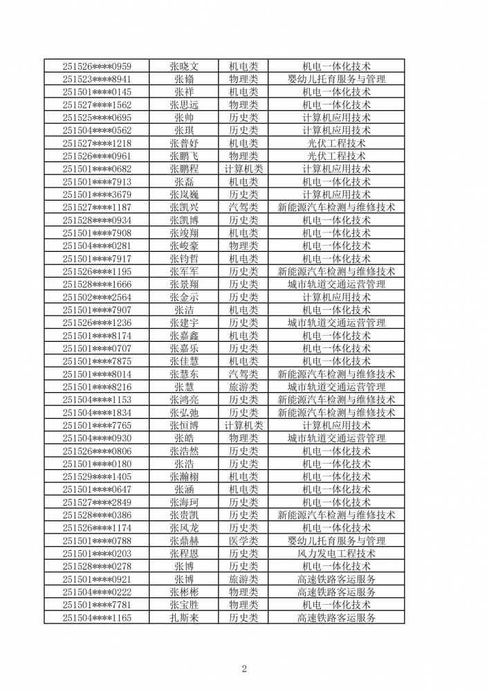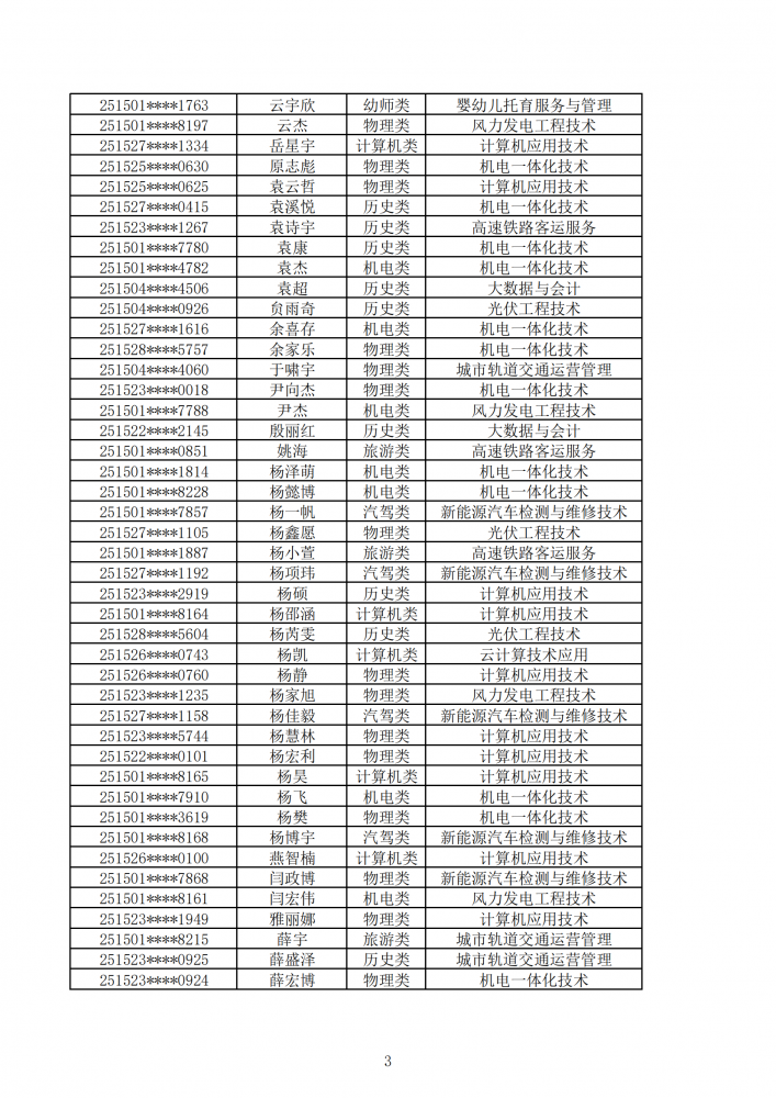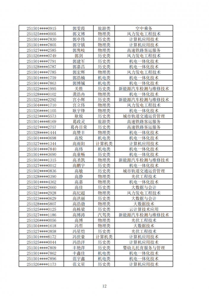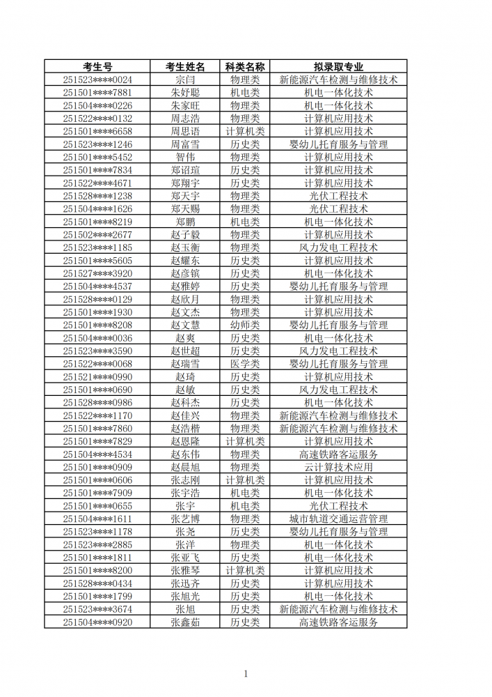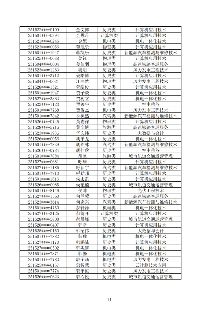 内蒙古能源职业学院2025年第一次单独招生考试拟录取名单