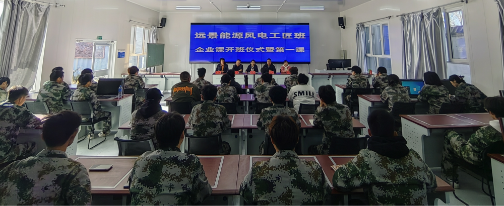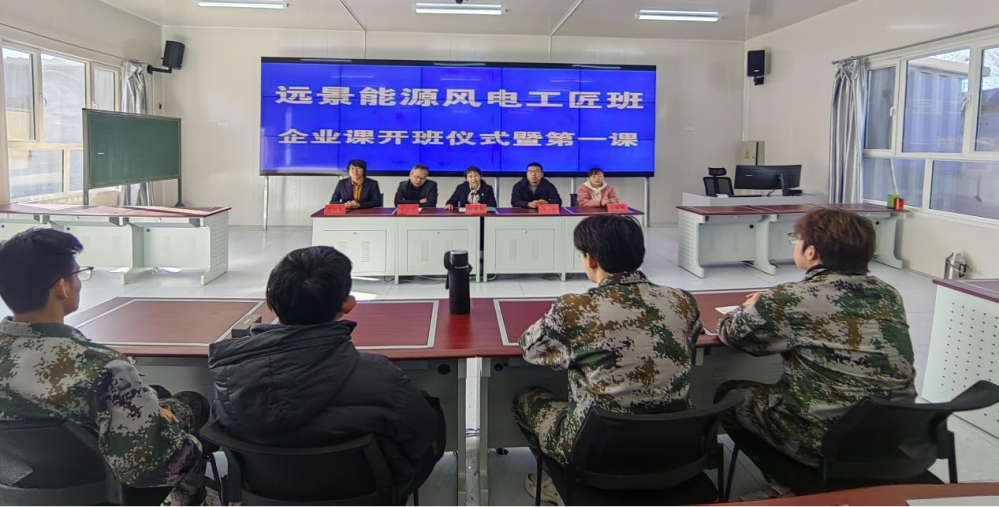 4月14日上午,2023级远景能源“工匠班”企业课开班仪式在学院仿真实训室举办。教务处、就业处负责人及2023级风电专业工匠班学生共同见证产教融合育人新实践。仪式由教务处处长刘国华主持。