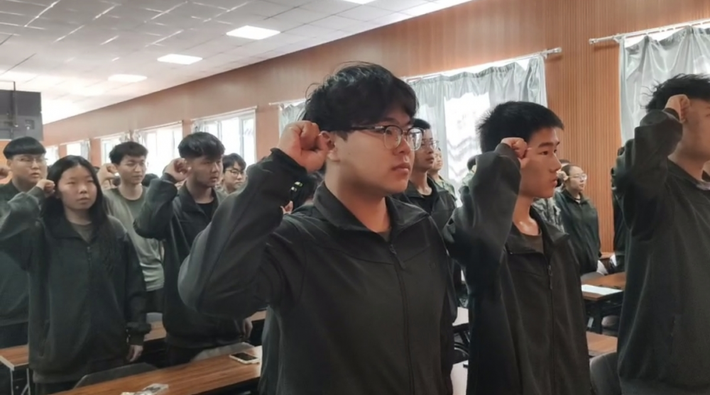 经过层层筛选与考察,共有75名同学光荣地加入了中国共产主义青年团。在激昂奋进的团歌声里,新团员面向鲜艳的团旗,庄严地举起右手,许下铿锵誓言。