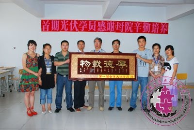 2011年6月16日上午,我院第一届光伏班学员主持赠送匾额仪式,感谢母院辛勤栽培,谨颂学校“厚德载物”。学院党总支书记高忠厚,办公室主任张岿、党办主任陆富平、学生处处长张东升、团委书记姚冬梅、教务处副处长许进湘及部分教师参加了仪式。 高书记代表学院在仪式上讲话,他说,你们带动了学院学风的转变,你们良好的素质修养也影响大专和中专的学生们。他希望学员们走上工作岗位以后要继续加强学习,要有吃...